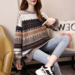 Product Description: New Autumn and Winter Pullover Knitwear Women’s Bottoming Shirt 2025Bf Loose Lazy Style Hong Kong Style Jacquard Quilted Knitwear Women