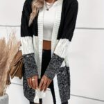 Product Description: Cross-border 2024 autumn and winter striped contrast color European and American Amazon casual fashion buckle knitted cardigan