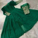 Product Description: Sleeves Embroidery Maxi 2Piece?? Size Mesurement Chest Size 20/21 Maxi Length 50 Maxi Ghair 120 Embroidery Trouser Length 37 Maxi Stuff Chiffon With Inner Attached Trouser Malai crepe
