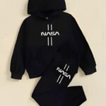 Product Name: 2 Pcs Boy’s Fleece Printed Hoodie Tracksuit