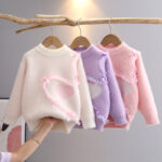 Product Description: Girls Sweater Imitation Mink Velvet Autumn and Winter New Pullover Round Neck Knitted Top Girls Outer Wear Purple Middle Children 3 to 6