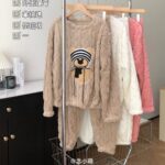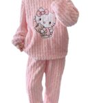 Product Description: Hello Kitty Bear Coral Fleece Pajamas Winter Flannel Thickened Pants Sweet Cartoon Cute Home Clothes suit