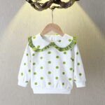 Product Description: 2025 New Korean Style Spring and Autum Girls’ Clothing Lapel Polka Dot Kidsren’s Sweatshirt Baby Girl Autum Long-Sleeved Cotton Top