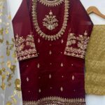 Handwork And Embroidery Shirt With Emb Dupatta And Maysoori Trouser Kids 3piece