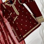 Product Name: 2 Pcs Women’s Stitched Shamoz Silk Embroidered Shirt And Trouser