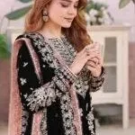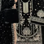 • Shirt Fabric: Velvet• Pattern: Sequins Embroidered• Shirt Front Pattern: Sequins Embroidered• Neckline: Sequins Embroidered• Sleeves Pattern: Sequins Embroidered• Daman: Sequins Embroidered• Shirt Back Pattern: Plain• Trouser Fabric: Velvet• Trouser Pattern: Patch Work• Dupatta Fabric: Velvet• Dupatta Pattern: Embroidered• Number Of Pieces: 3 Pcs• Package Includes: 1 x Shirt, 1 x Trouser, 1 x Dupatta• Shirt Cutting: 3 Meter• Trouser Cutting: 2.5 Gazz• Dupatta Cutting: 2.5 Gazz• Color: Black• Note: There might be an error of 1-3 cm due to manual measurement, and slight color differences may occur as a result of varying lighting and monitor effects.• Product Code: MZ2041200006ZASE
