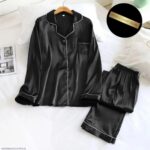 Product Description: PISTA COLLECTION? Piping Work On Shirt And Trouser Pocket Night Wear Suit 3Pcs (With scrunch) Size Measurement Chest Size 21 Shirt Length 33/34 Trouser Length 38/39 Stuff Shamose Silk With Silk Scrunch With Premium Quality? Price 2000 ?